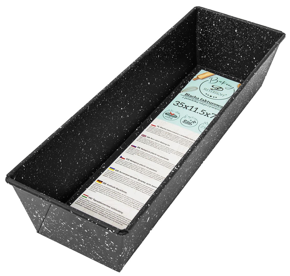 Blacha do pieczenia keksu, wykonana z wysokiej jakości stali. Pokryta powłoką nieprzywierającą ułatwi przyrządzanie wypieków wszystkim cukiernikom, zarówno tym domowym, jak i profesjonalistom. Blacha ma wzór marmurkowy, który sprawia, że prezentuje się bardzo ładnie. Dno formy jest fakturowane, co pozwala na sprawniejsze wyjmowanie ciasta. Niezbędnik dla każdej kuchni i gastronomii.