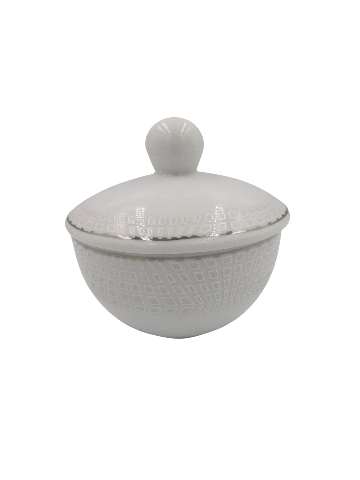 Cukiernica Kobra polskiego producenta porcelany stołowej Karolina dekorowanej przez firmę Waza. Produkt w kolorze śnieżnobiałym, udekorowany delikatnym wzorem oraz srebrną linią, dodającą elegancji.
