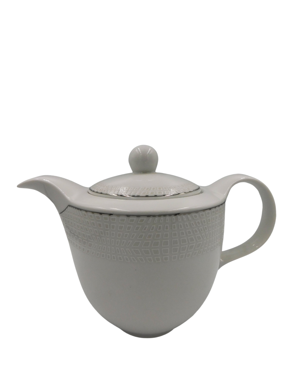 Dzbanek na kawę/ herbatę Kobra polskiego producenta porcelany stołowej Karolina dekorowanej przez firmę Waza. Produkt w kolorze śnieżnobiałym, udekorowany delikatnym wzorem oraz srebrną linią, dodającą elegancji.