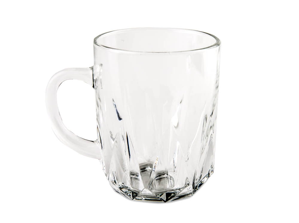 Kubek wykonany ze grubego przezroczystego szkła, odpornego na obicia oraz wysokie temperatury. Wygodny i duży uchwyt pozwala na pewnie trzymanie kubka w dłoni. Przeznaczony do użytku w kuchence mikrofalowej oraz w zmywarce.
