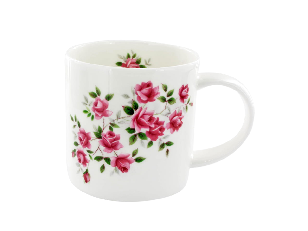 Produkt wykonany z wysokiej jakości porcelany typu Bone China. Kubek w kolorze białym, udekorowany kwiatami, ręcznie malowanymi, z niezwykłą precyzją.