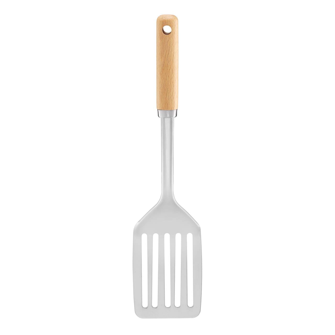 Łopatka ażurowa z kolekcji NATURAL od marki AMBITION wykonana z wysokiej jakości stali nierdzewnej i drewna bukowego, które cechuje się niezwykłą solidnością i odpornością na zniszczenia. Łopatka przeznaczona jest do przekładania na talerz różnych ryb, mięs i placków. Całość, a zwłaszcza rękojeść są bardzo dobrze wyprofilowane, co pozwala na działanie ze szczególną precyzją.