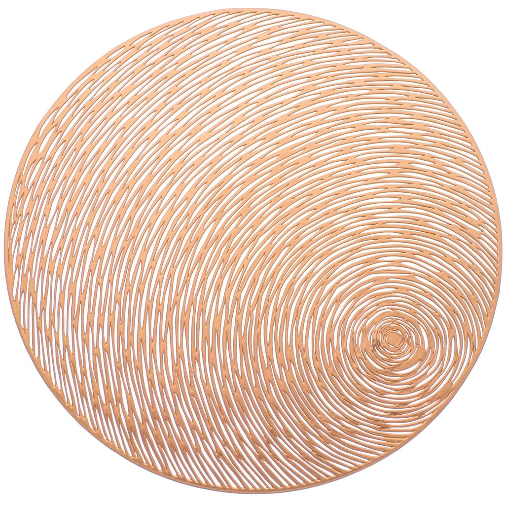 Ażurowa, okrągła podkładka z tworzywa w kolorze złotym, jest niezbędnym dodatkiem do dekoracji stołu i zabezpieczeniem przed plamami, gorącymi naczyniami , zarysowaniem blatu. Podkładka została wykonana z tworzywa więc łatwo utrzymać ją w czystości. Wystarczy przetrzeć wilgotną szmatką, lub wyprać w letniej wodzie z dodatkiem delikatnych środków piorących.