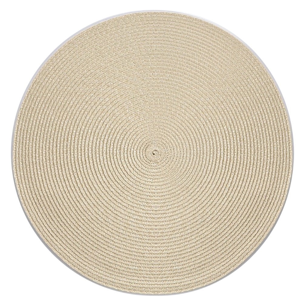 Okrągła pleciona podkładka w kolorze beżowym, jest niezbędnym dodatkiem do dekoracji stołu i zabezpieczeniem przed plamami, gorącymi naczyniami , zarysowaniem blatu. Podkładka została wykonana z tworzywa więc łatwo utrzymać ją w czystości. Wystarczy przetrzeć wilgotną szmatką, lub wyprać w letniej wodzie z dodatkiem delikatnych środków piorących.