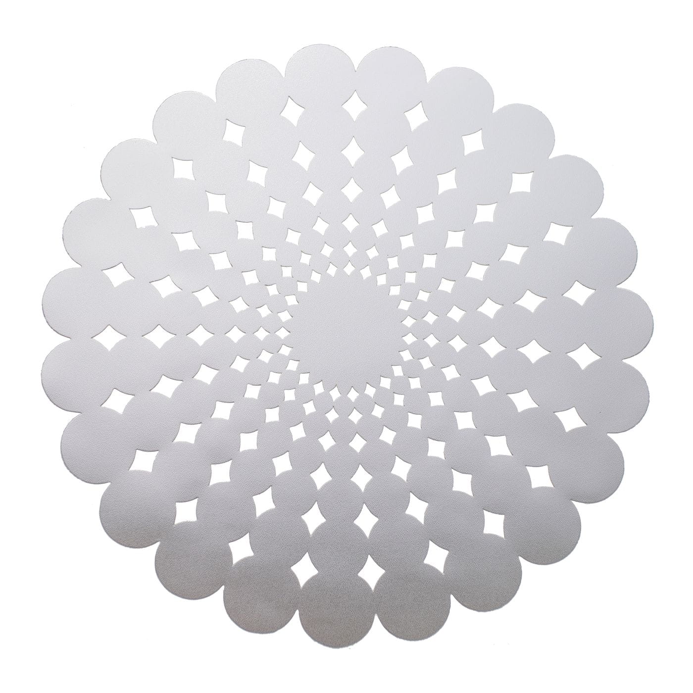 Okrągła, ażurowa podkładka w kolorze srebrnym, jest niezbędnym dodatkiem do dekoracji stołu i zabezpieczeniem przed plamami, gorącymi naczyniami , zarysowaniem blatu. Podkładka została wykonana z tworzywa więc łatwo utrzymać ją w czystości. Wystarczy przetrzeć wilgotną szmatką.