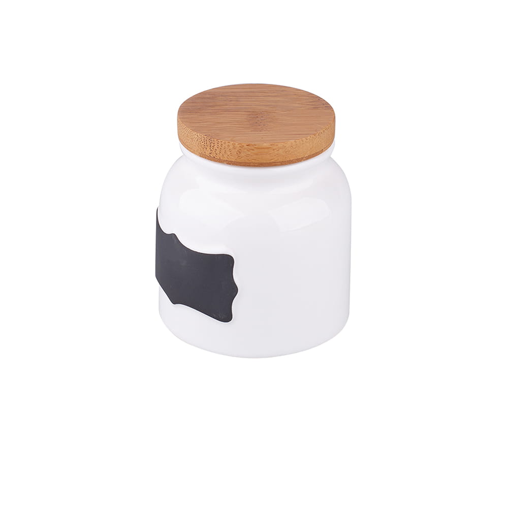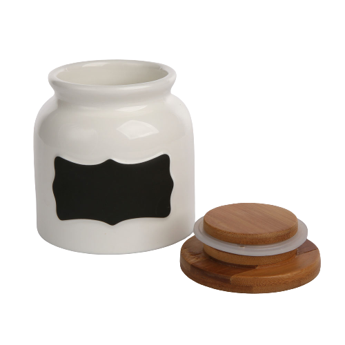 Pojemnik w kolorze ecru ozdobiony został matową czarną powłoką, na której za pomocą kredy możemy podpisać zawartość słoiczka. Minimalistyczna, biała bryła pojemnika, zestawiona z bambusową pokrywą sprawia nowoczesne wrażenie i pozwala stylowo przechować produkty sypkie. Pojemnik wspaniale skomponuje się zarówno z nowoczesną kuchnią, jak i bardziej tradycyjnymi wnętrzami.