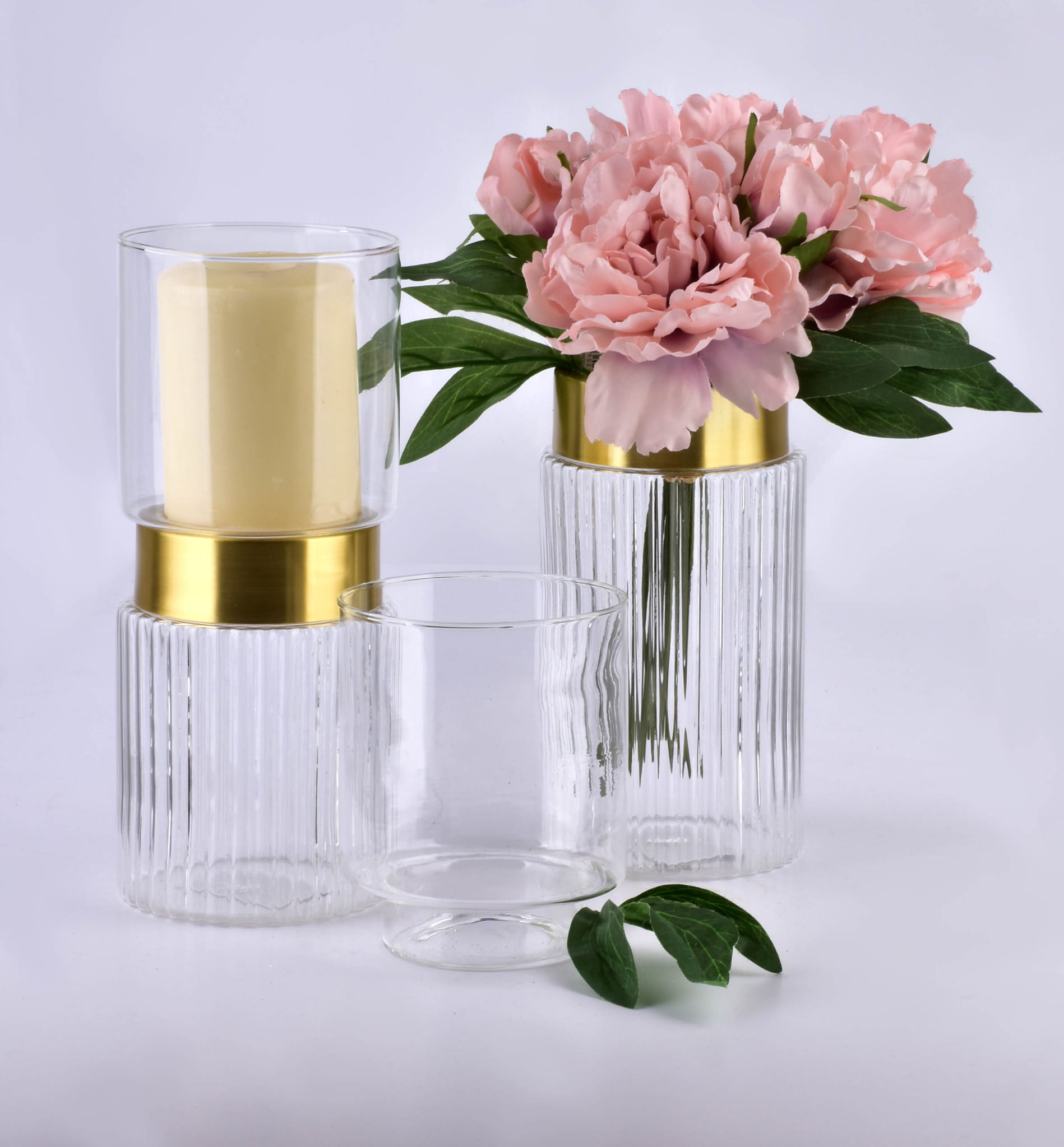 Dwuczęściowy elegancki świecznik, który może posłużyć jednocześnie jako wazon. Można go używać wedle własnego uznania. To coś dla fanów funkcjonalności, która jest jednocześnie piękna. Złote zdobienie sprawia, że świecznik jest elegancki i efektowny.