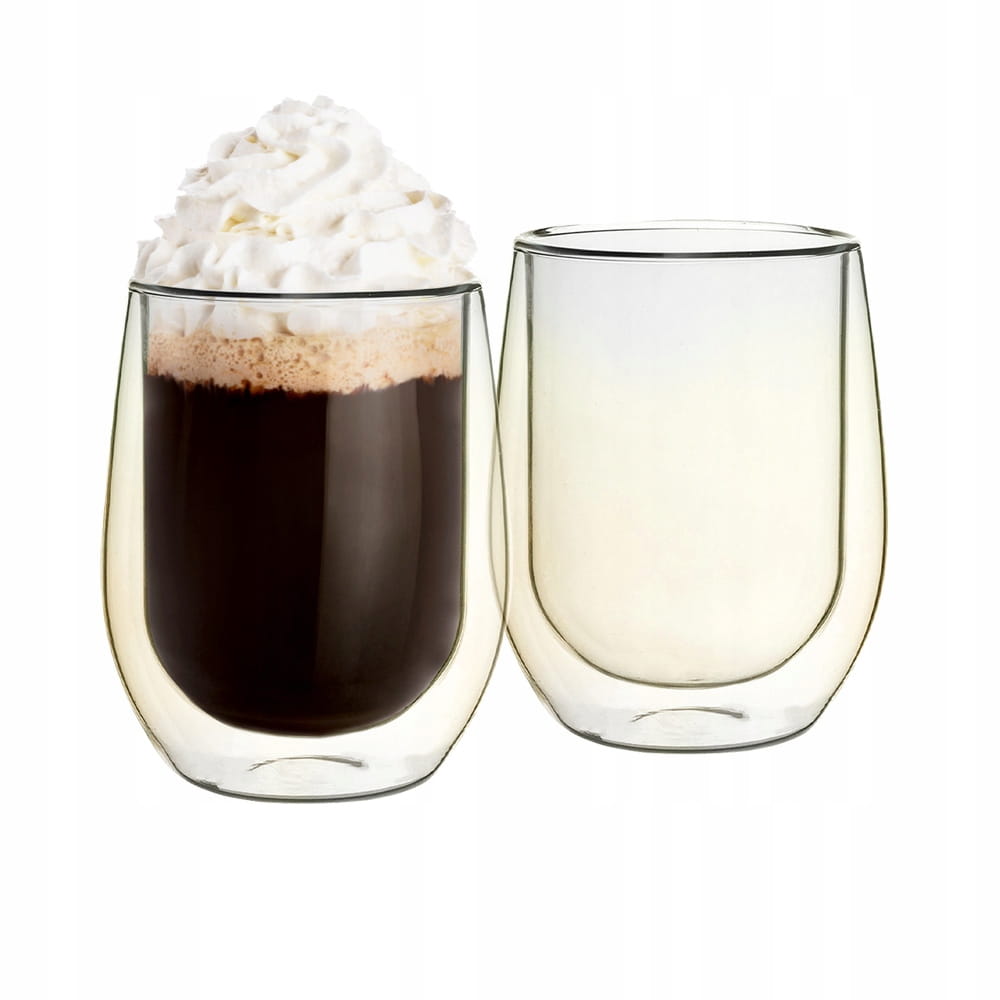 - Wykonane z wysokiej jakości szkła. Są niezwykle lekkie, a jednocześnie są trwałe i odporne na uszkodzenia. Dzięki podwójnym ściankom napój dłużej utrzymuje właściwą temperaturę. Szklanki sprawdzą się zarówno do ciepłych i zimnych napojów.