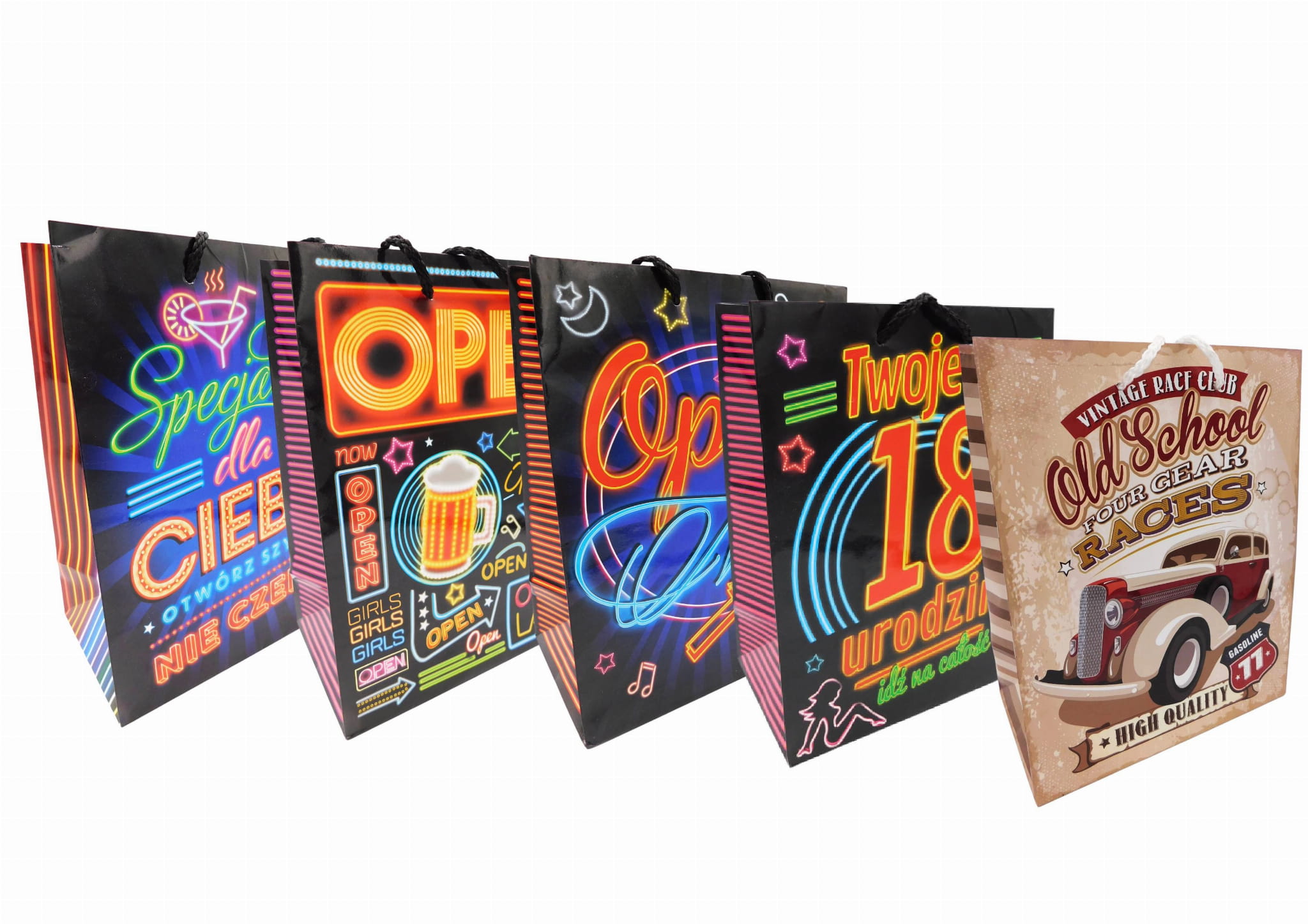 Torebka prezentowa dostępna w kilku wzorach (do wyboru). Idealna do szybkiego i efektywnego pakowania prezentu na każdą okazję i dla osób w każdym wieku.